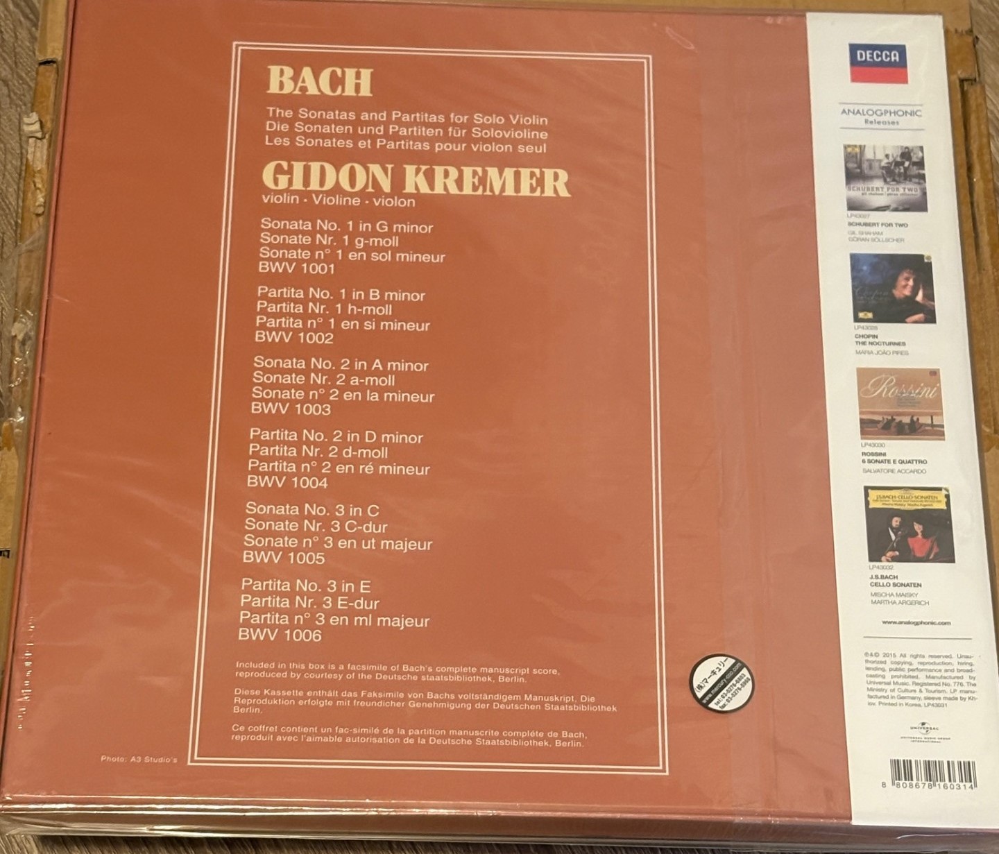 Sonatas & Partitas For Solo Violin: Kremer (1980) LP